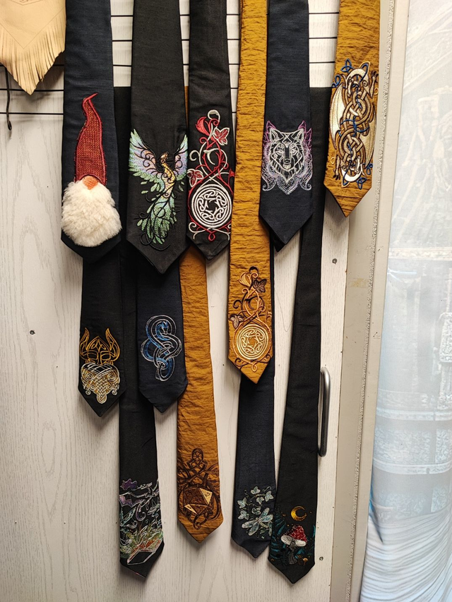 Custom stropdassen hebben een lengte van 140/150 cm en worden gemaakt van verschillende feestelijke stoffen. Het borduurpatroon kan naar wens aangepast worden, hiervoor zijn verschillende patronen beschikbaar. Neem contact op om details te bespreken voor het bestellen van dit product.