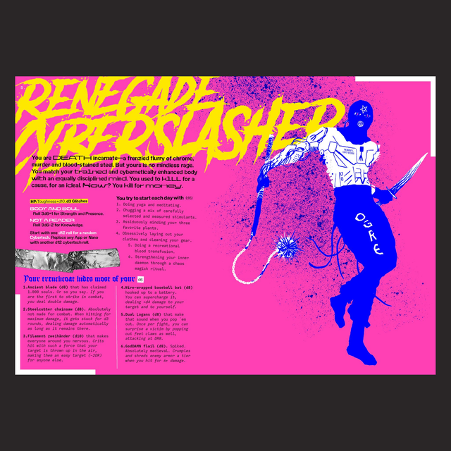 CY_BORG is een compleet regels-licht, woede-zwaar tabletop roleplaying game gebaseerd op en compatibel met MÖRK BORG. Makkelijk te spelen, makkelijk te hacken.